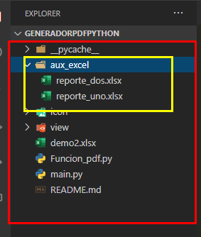 self.ruta_icon = raiz+r'\icon\icono.jpg'Necesitamos trabajar con una carpeta auxiliar, donde se almacenara el excel generado (esta carpeta no estara repleto de archivo, solo de los excel que deseamos trabajar, cabe recalcar que los nuevos no se vuelve a almacenar, simplemente reemplazaran al existente) para ello se creo el aux_excel