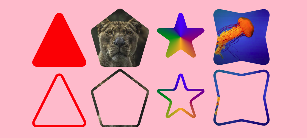 }the --path variable behaves the same way as the path we define inside clip-path: polygon(). Use Clippy to generate one for you. It also accepts a third (optional) value for the radius.