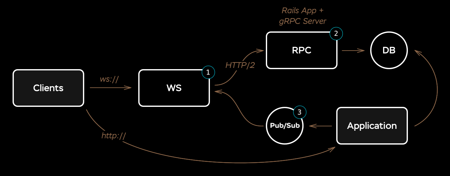 | Deployment | fayesocket as websocket server | anycable-go as websocket server | iodine as websocket server |