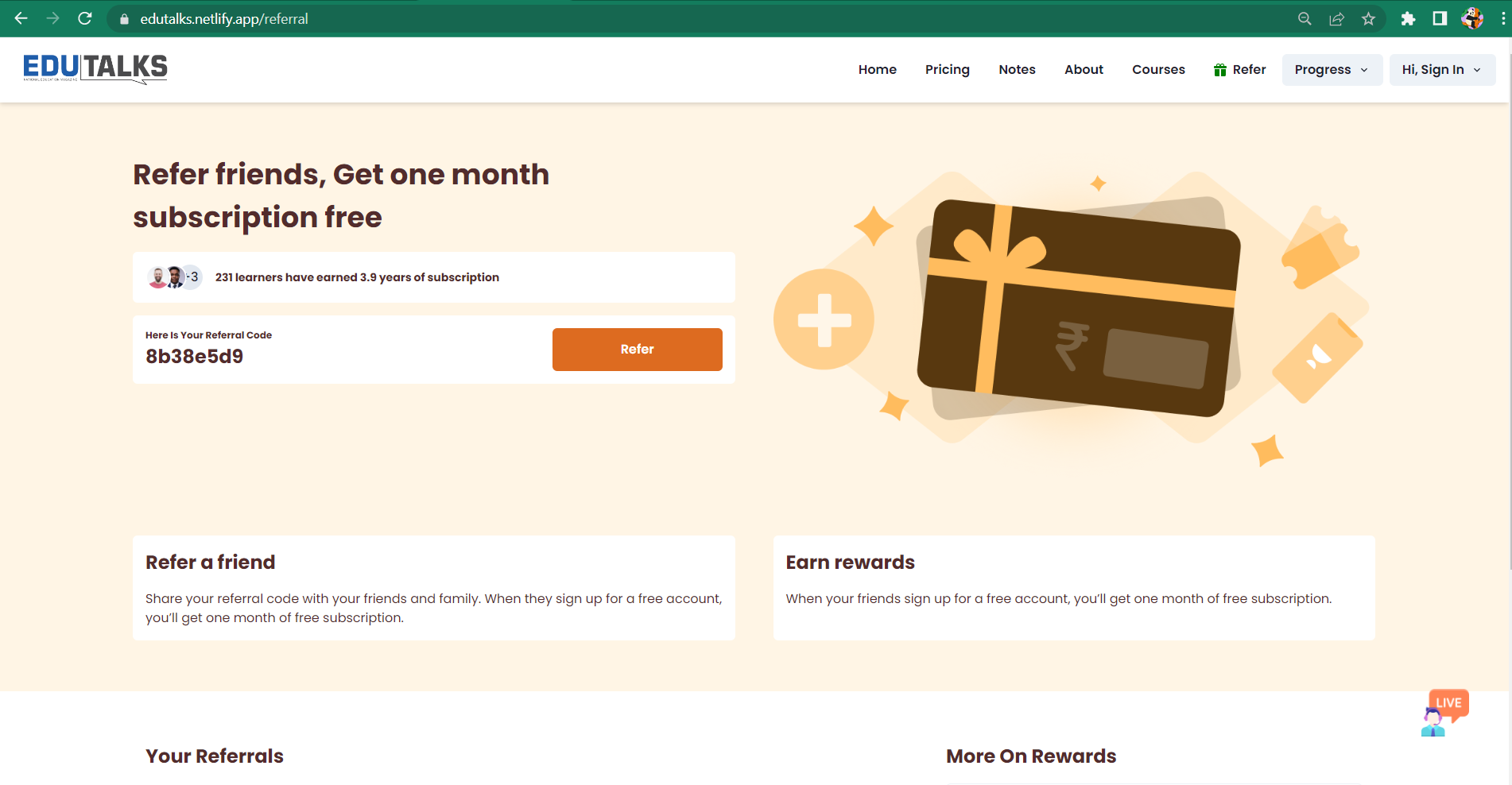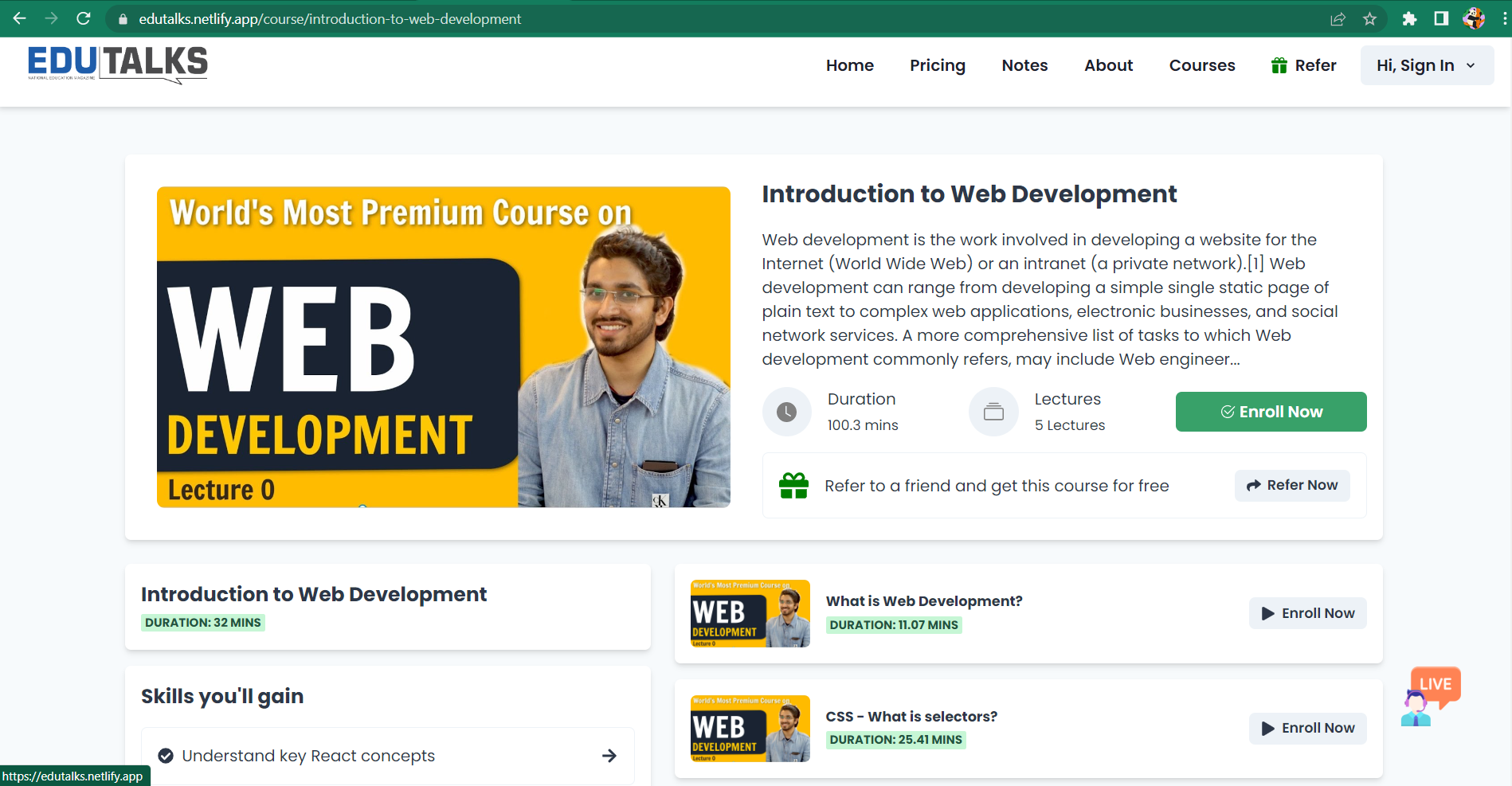 In our website all user will get some free videos that they can access and start learning online and also if they refers there friends and family they will get a 1 month free subscription .