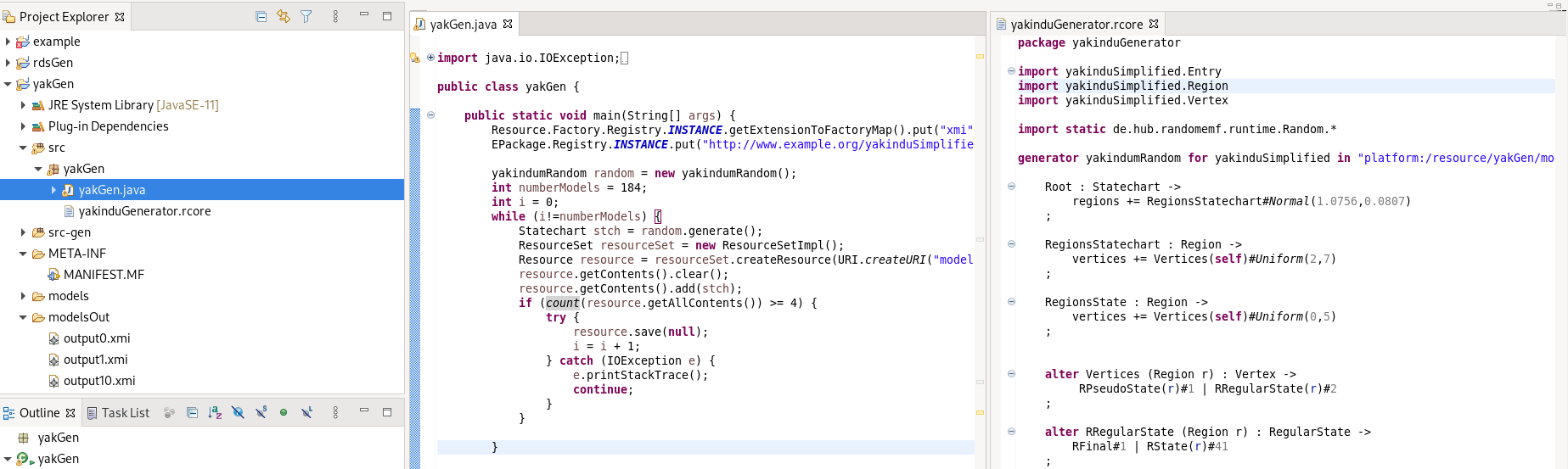 - Case of RANDOM - We provide the models used in the paper. For the generation process, we use the generator of the repository. At the end of the three notebooks of the previous step, there is a code snippet of how we generate the models using this generator. It uses the jar whose link is in the folder randJar, you have to download before if you want to generate models.