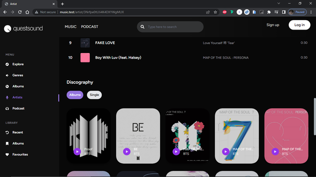 catatan: aplikasi ini belum responsive dan ada 3 halaman yang belum ada, seperti recent, saveAlbum, dan favourites