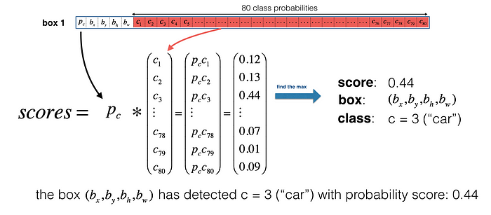 NB: The ONNX conversion removes 1 feature which is the objectness score, pc. The original model has (5 + classes) features for each bounding box. We will use the class probability as a proxy for the objectness score.