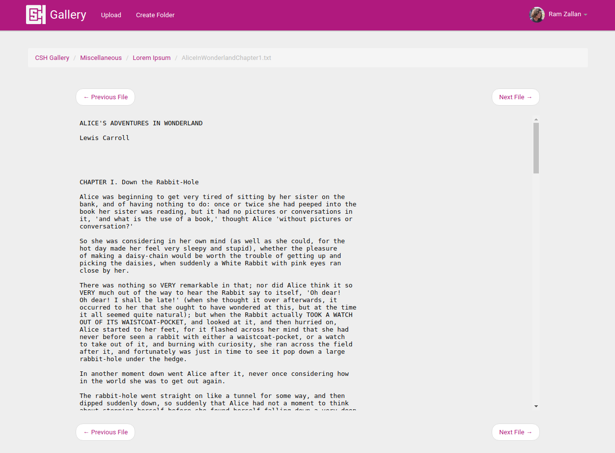 CSH Gallery is an internal site, and thus not public-facing, however below are some screenshots showing how the site looks and works.