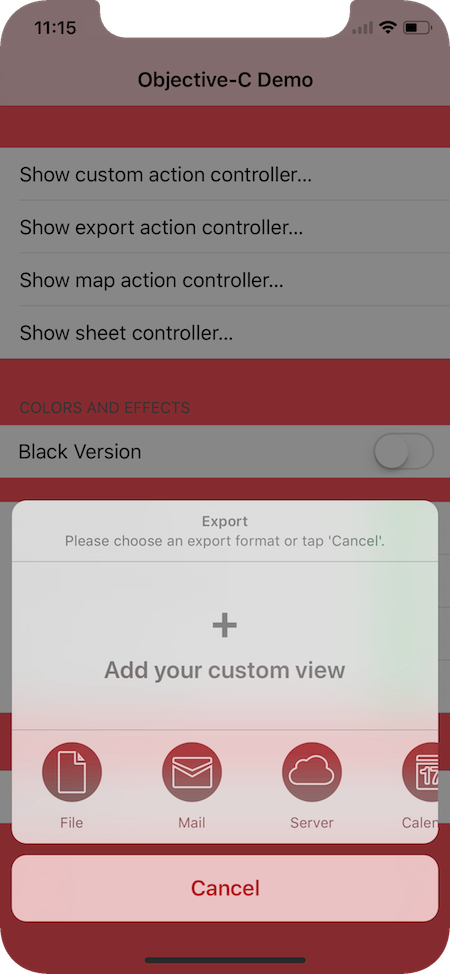 RMActionController also contains two special actions (RMImageAction and RMScrollableGroupedAction) which allow to build a share sheet which looks very much like the UIActivityViewController. In addition, RMActionController can be configured to look like the new buy sheet which can be found in the iOS 11 App Store.