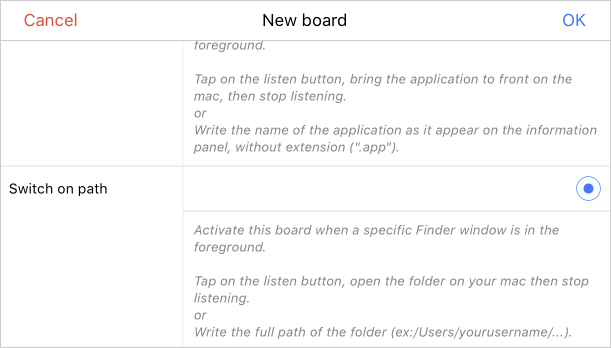- Automatically switch to a particular board depending on which App or Finder folder is foreground on the mac.