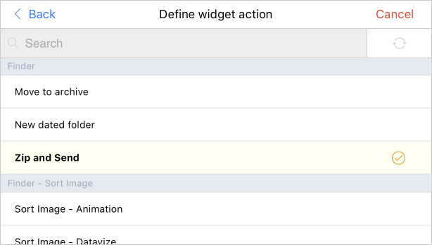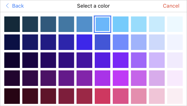 Pickers on the app react the same way. Tap on an item to select. Tap on "Back" button to valid the selection or on "Cancel" to not.