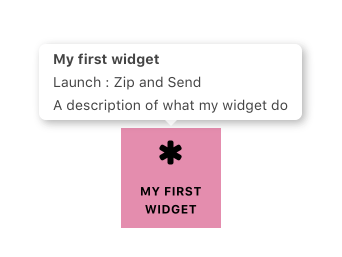 In "run" mode, a tap-hold on a widget will show a tooltip with title, note and macro name of the widget.