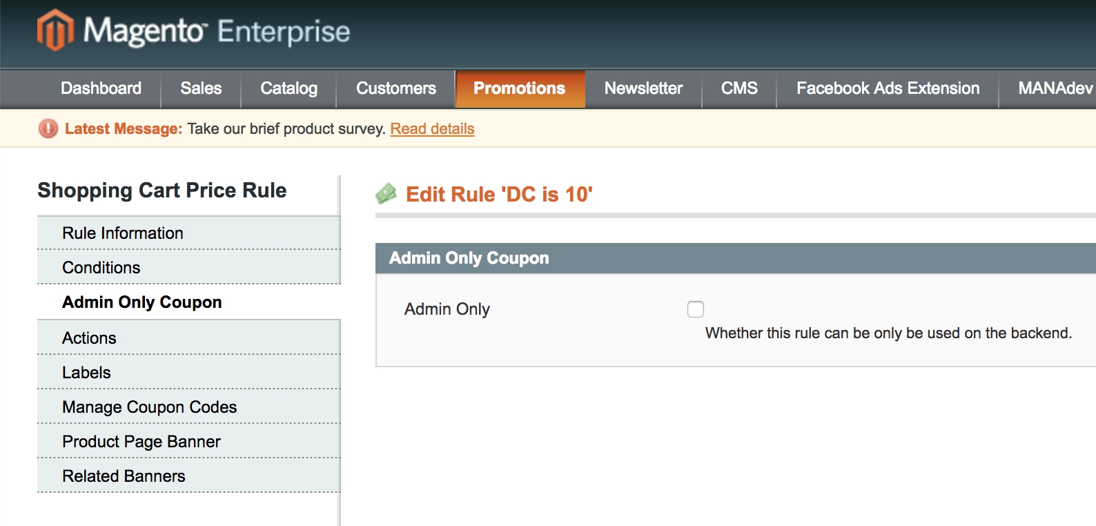 Magento 1 Admin Only Coupons Extension to make it so you can restrict shopping cart price rules to only be usable by admin users. Developed for Magento 1 EE 1.14