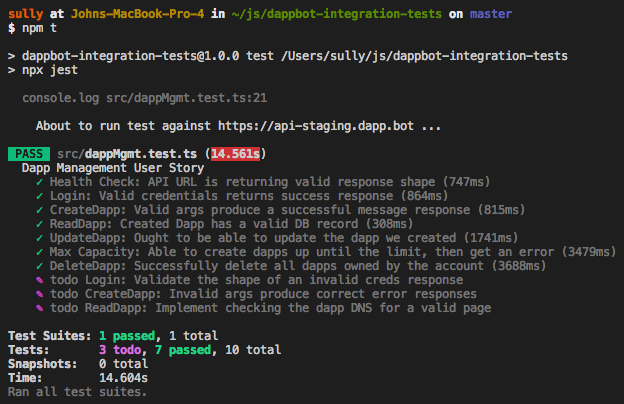 apiUrl, the tests will default to staging (https://api-staging.dapp.bot). - If the file does not specify