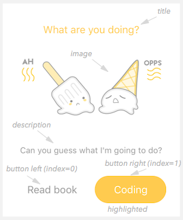 FEAlertController *alertController = [FEAlertController alertWithTitle:@"What are you doing?"