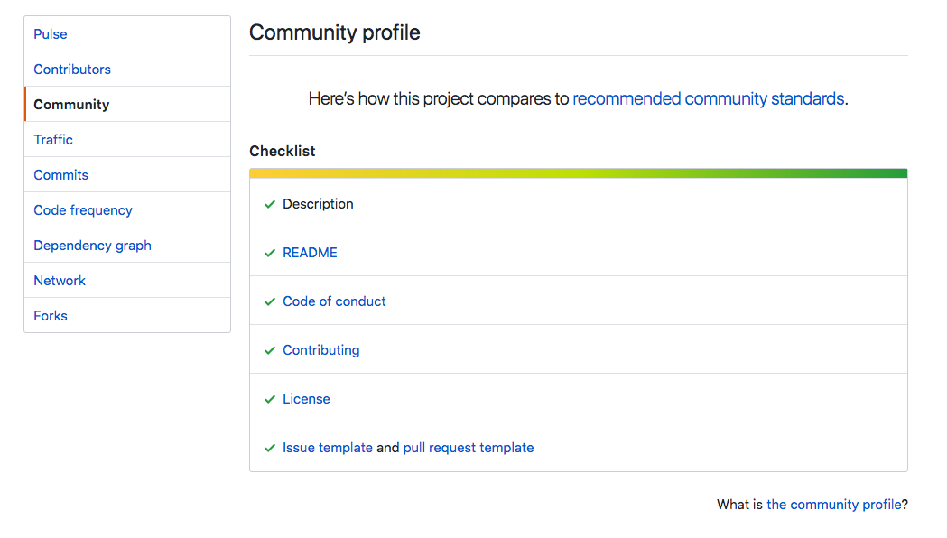 You can find the Community profile for your GitHub repo at github.com/username/repo/community.