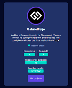 Projetos-React • Este repositório foi criado para armazenar alguns projetos feitos com React. • Projetos existentes React-Calculadora Uma calculadora com React simples, mas muito divertida. React-Rating Componente de classificação interativa. React-advice Aplicativo gerador de conselhos usando a Advice Slip API. GitHub-Finder A funcionalidade principal é buscar por usuários do GitHub e trazer os dados via resposta da API.