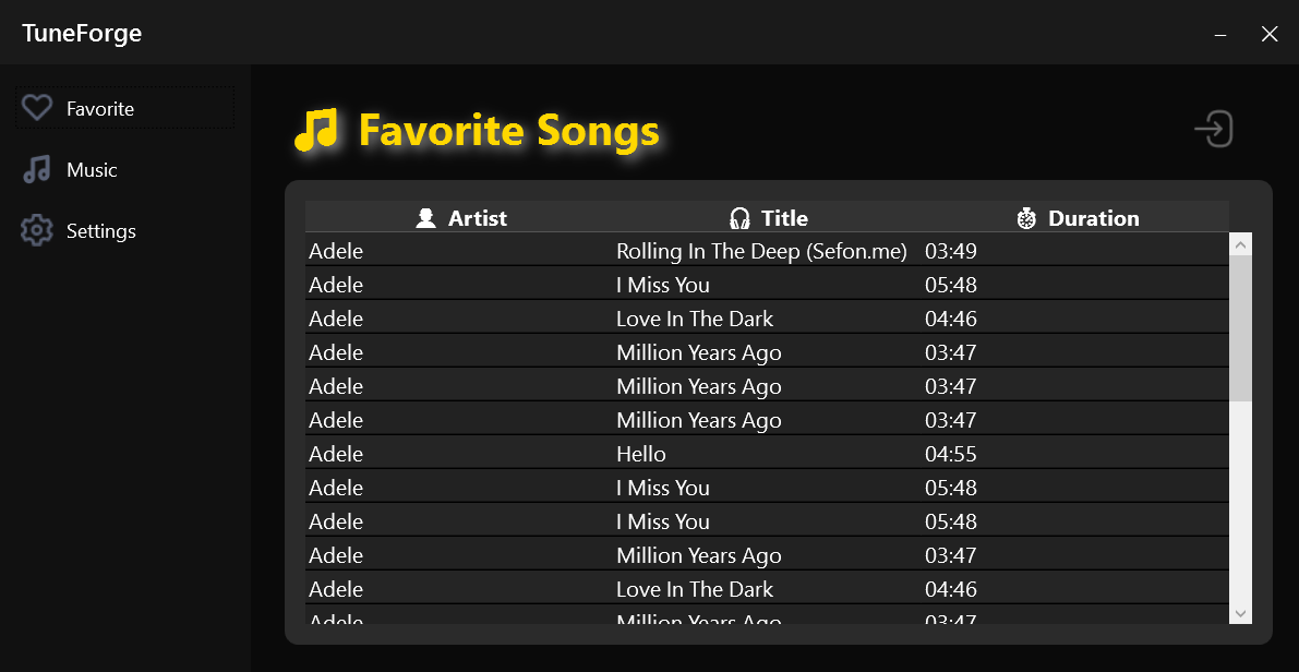 TuneForge saves your favorite songs in a FavoriteSong.txt file within the program folder.