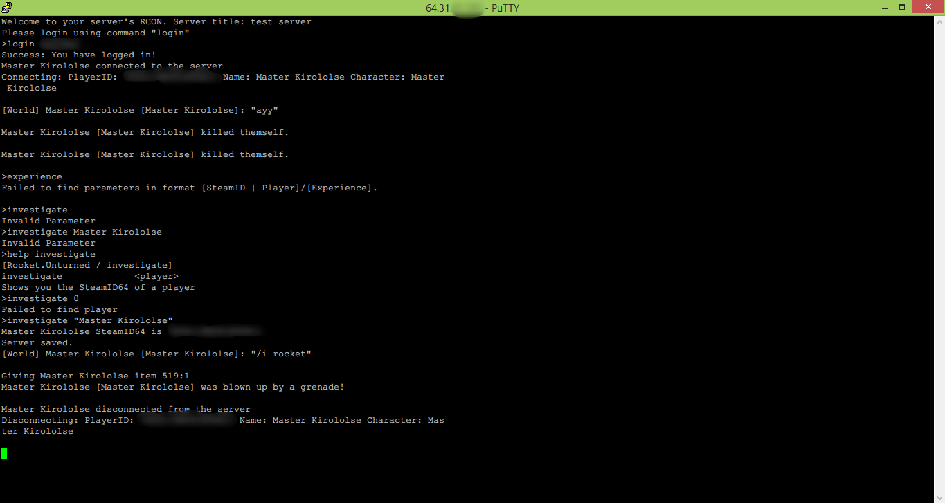Control & View logs of your unturned3 server with any telnet client.