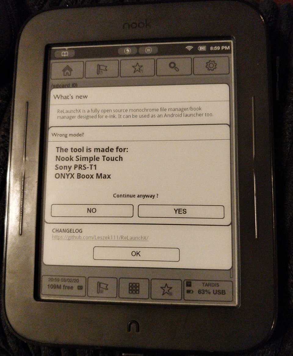 I have a Nook Simple Touch - the original, not the Glowlight. I installed Version 2.1.5 from F-Droid.
