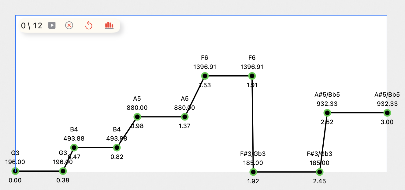 Plot View: Users can tap within the view to select a series of points, subsequently subjected to linear interpolation by the vDSP.linearInterpolate function.