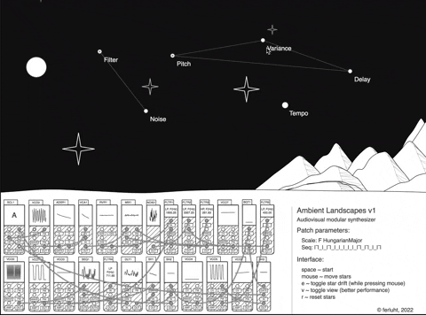 The demo is based on "code_art_exhibition" branch of the repo and features automatic drone/noise/ambient generative patch generation. Controls: