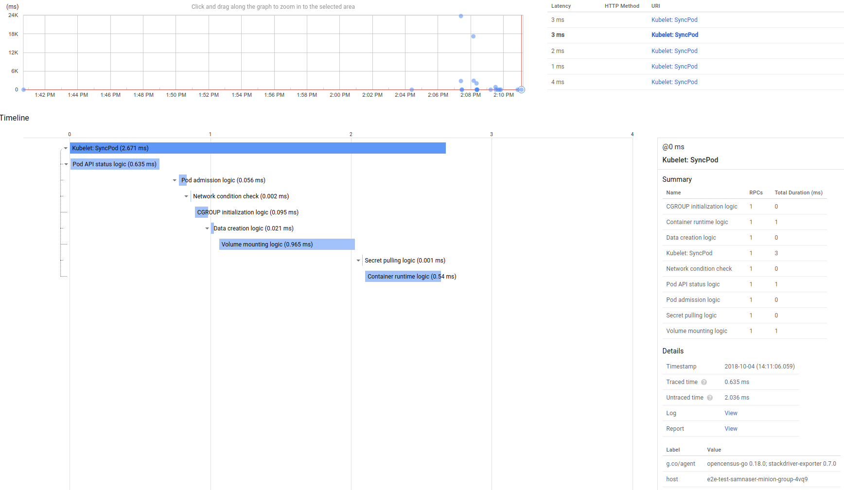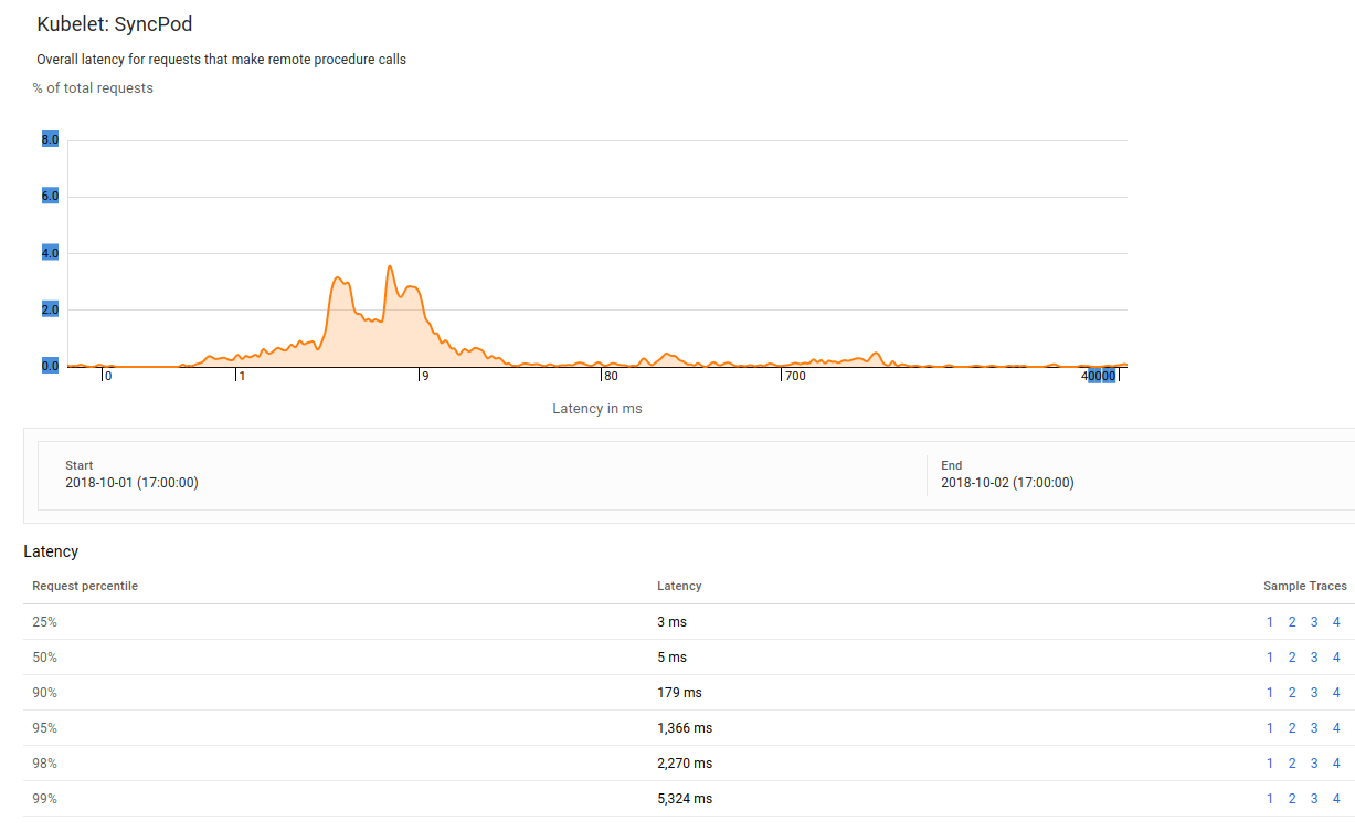 These traces are can be queried per node, or per latency percentile. Stackdriver provides the following useful view which could prove useful in diagnosing common causes for high latency: