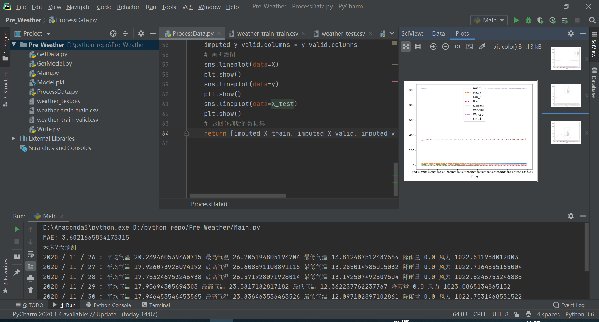 直接用python运行pre_weather/Main.py,就会在控制台输出预测的数据