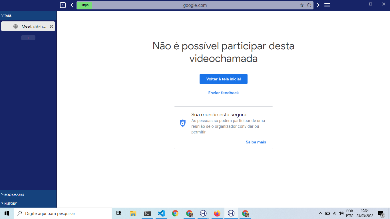 When trying to access a google meeting room, instead of the waiting screen, the following image appears: