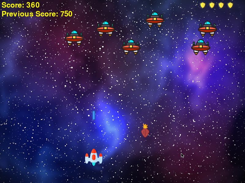 Players start with 5 lives. Every time a player receives damage from an enemy projectile or an enemy ship, a player loses 1 life.