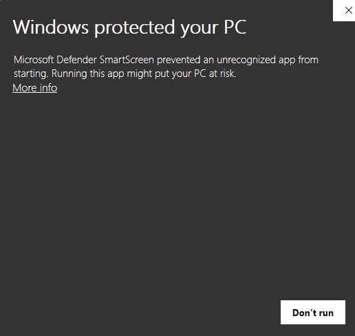 Click More info and press Run Anyways.