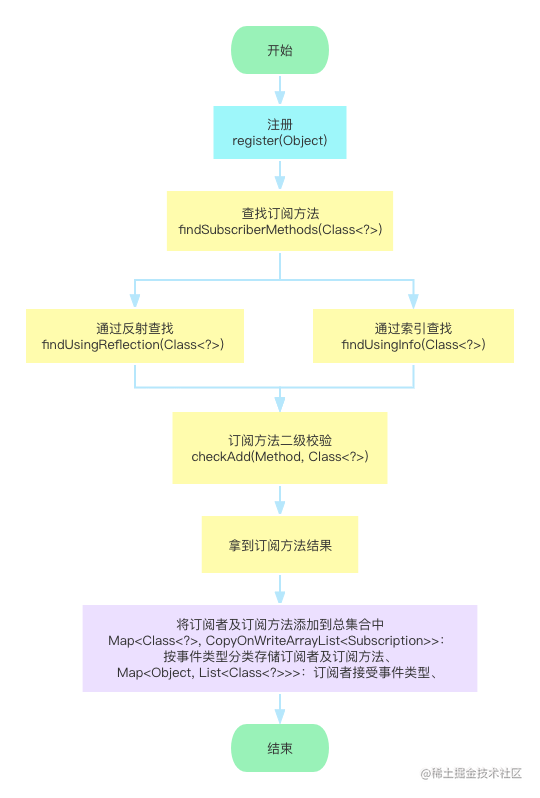 }该方法也没有什么复杂的操作,就是对 PendingPost 做了取值、释放、判断订阅关系是否还活跃(主要是判断有没有取消注册)以及调用 invokeSubscriber(Subscription subscription, Object event) 方法去调用订阅者方法。