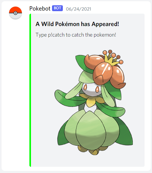 Users sending messages have a random chance to spawn a pokemon that they can catch using commands. Conversation also earns them exp, which levels up their pokemon.