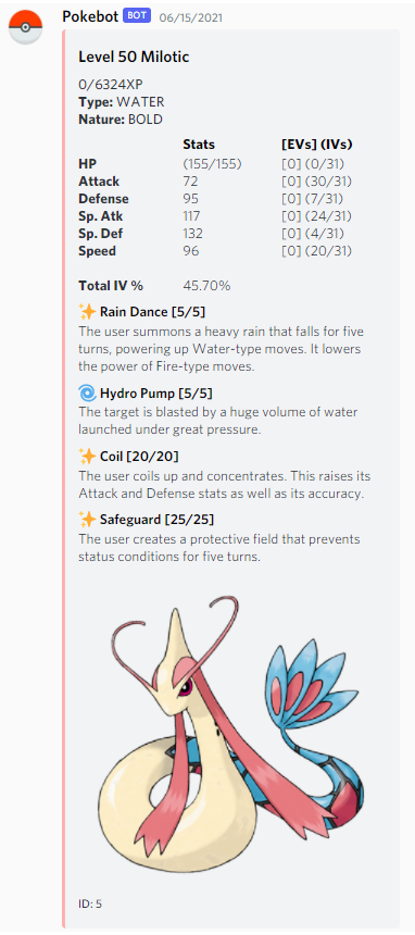 Here is one example of an embed, which displays a user's pokemon information