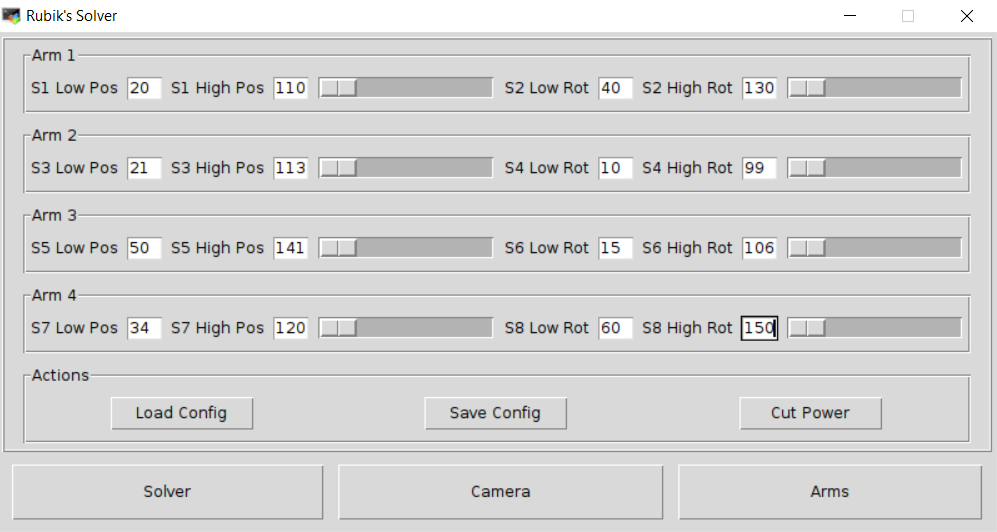 arms.py- a module which hosts the classes needed to map a solution of a cube to a list of sequences that have to be directly applied to all 4 arms of the robot. The classes are particularized to the given robot. -