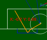 Exemple de l'UI de robotJackets, on peut voir les précédentes positions de la balle grace à la ligne orange: