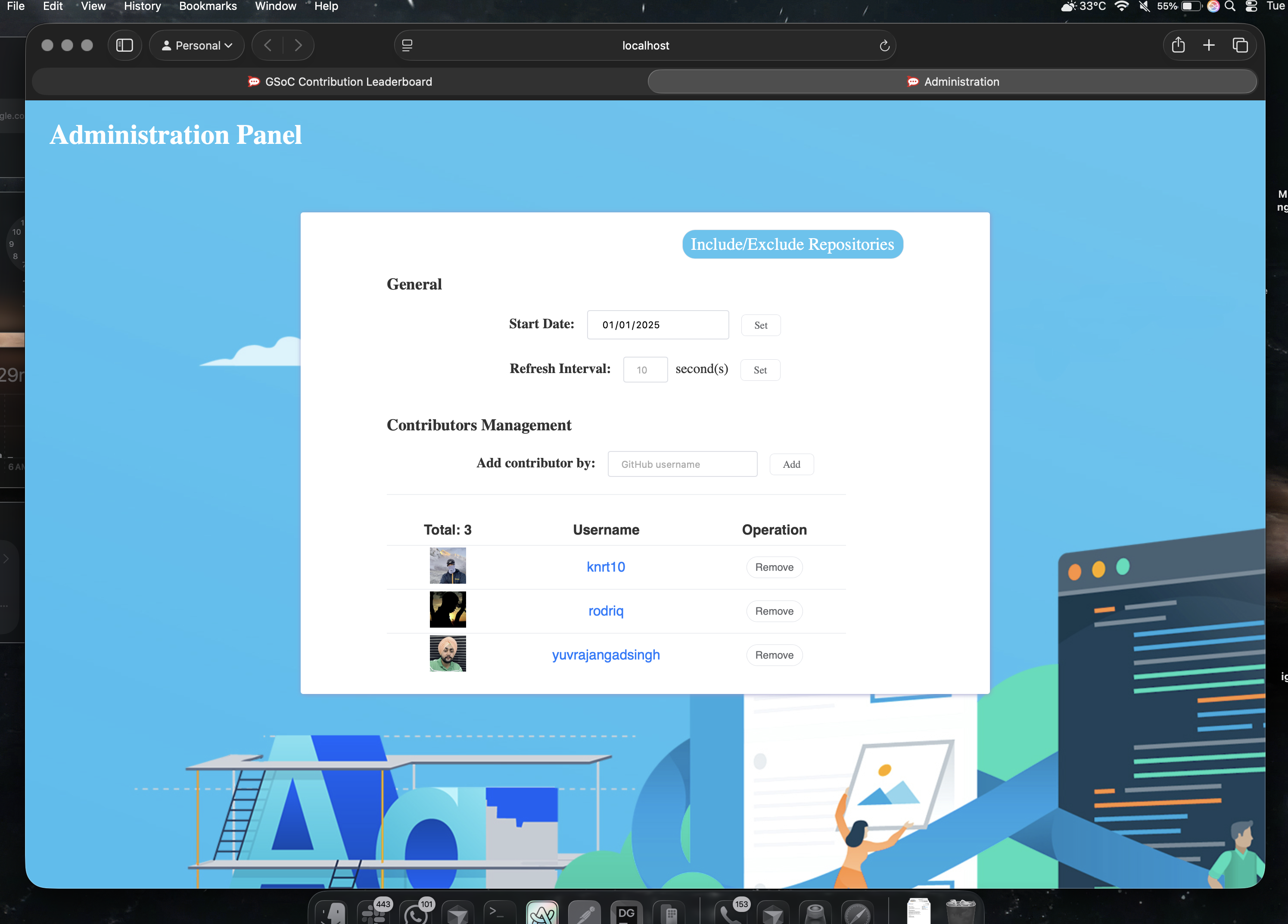 @yuvrajangadsingh very good work. Please resolve conflict and test one more time manually after. Please use the data file https://github.com/RocketChat/Opensource-Contribution-Leaderboard/blob/master/contrib/rocketchat/gsoc/2025/gsoc2025final.json when testing. |