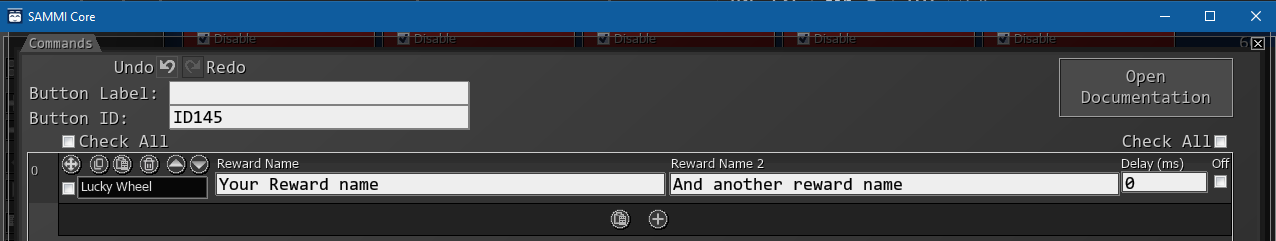 sammiclient.addListener('Lucky Wheel', functionToExecute)Note: These methods are not be available until after your Bridge connects to SAMMI. Make sure to wrap them in a function which you call in your Extension Commands section (which is initialized as soon as Bridge connects to SAMMI).