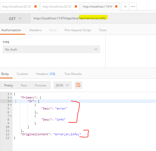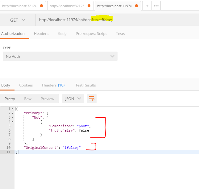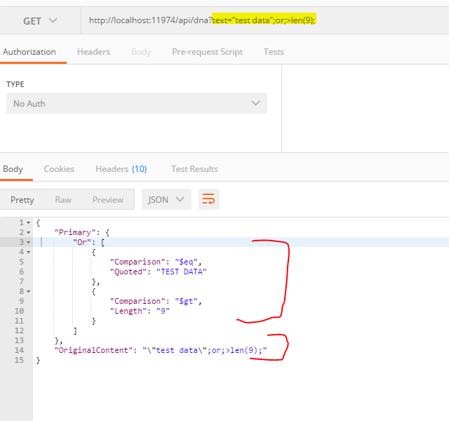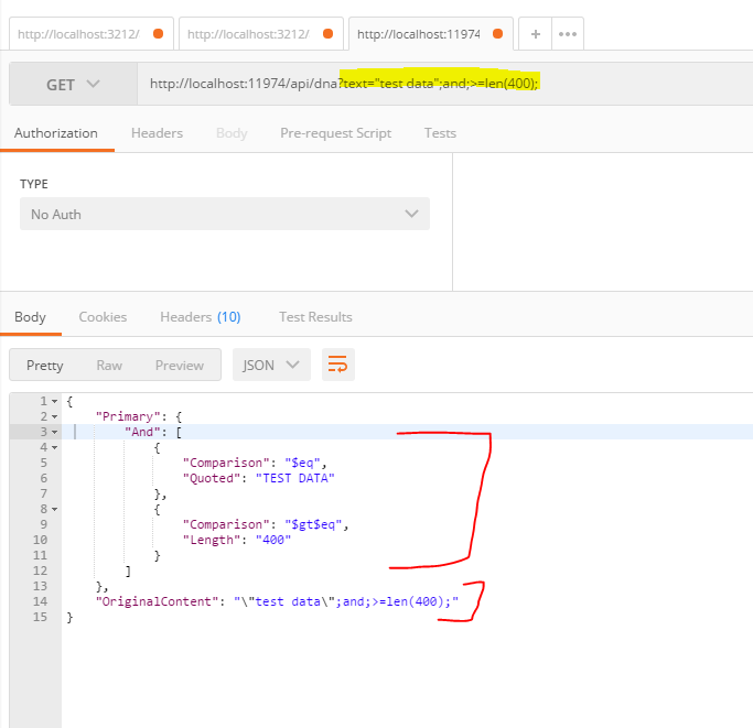 Example URI: "http://localhost:11974/api/dna?text="test data";or;>len(9);"