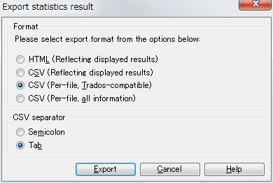 - CSV (Per-file, Trados-compatible) * only support "word" counts