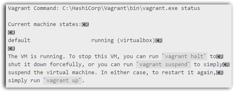 For example, I run vagrant status command: