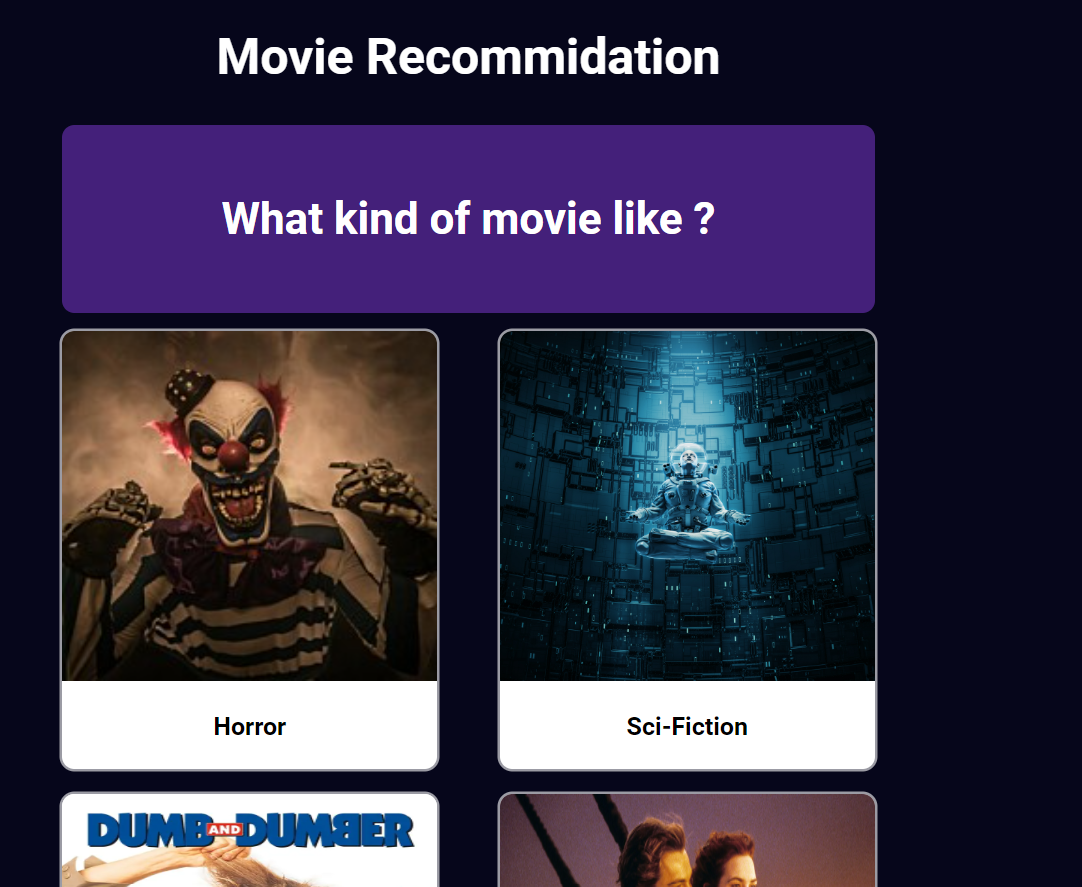 Movie_RecommendationV2 I upload just front-end pages Html, Css, Javascript Api link: https://api.themoviedb.org/ DEMO LINK #Survey Page #Contact Page