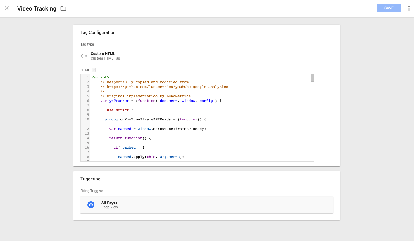 - Category: YouTube Video Tracking (you can make this whatever you want)