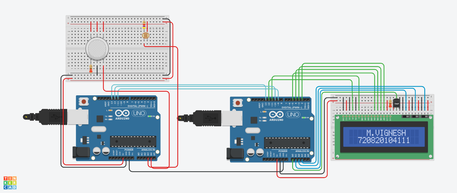 - Two Arduino boards are connected to each other, and their respective codes are in "Arduino 1" and "Arduino 2".