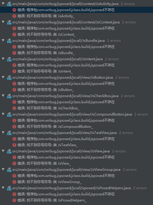 import com.wrbug.jsposed.jclass.build.jsposed.JsPosedHelpers_; 这个是编译生成的吗?源码没有找到呢 jsposed如何编译 我本地编译不成功 提示缺少类