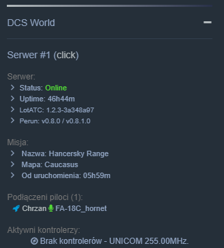Data displaying and handling is not in the current scope of this project. Since the end of 2018 the Perun data displaying has been hardcoded at forum.gildia.org , website for the Polish DCS community; examples: