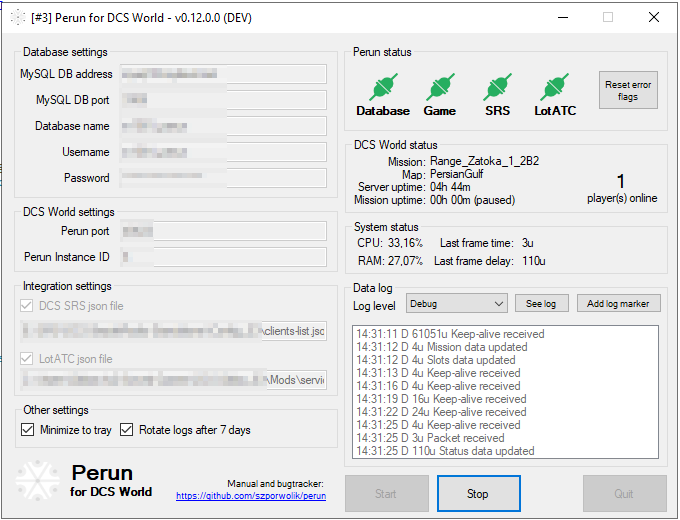 Provided windows app puts received TCP packets to MySQL database; additionaly Perun windows application can be used to merge LotATC and DCS SRS data in one database making Perun for DCS World wannabe ultimate integration tool for the server admins.