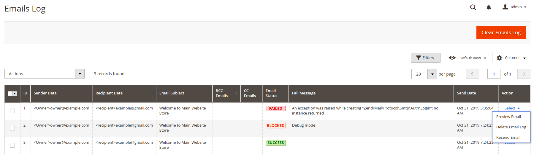 | Email logging | You get a smart block that keeps all sent email logs. It allows checking back who sent an email and how it was sent. Besides, you can check the current status (pending, in process or failed) as well as the exact sending time. Moreover, it is possible to find mistakes when checking the detailed logs. |