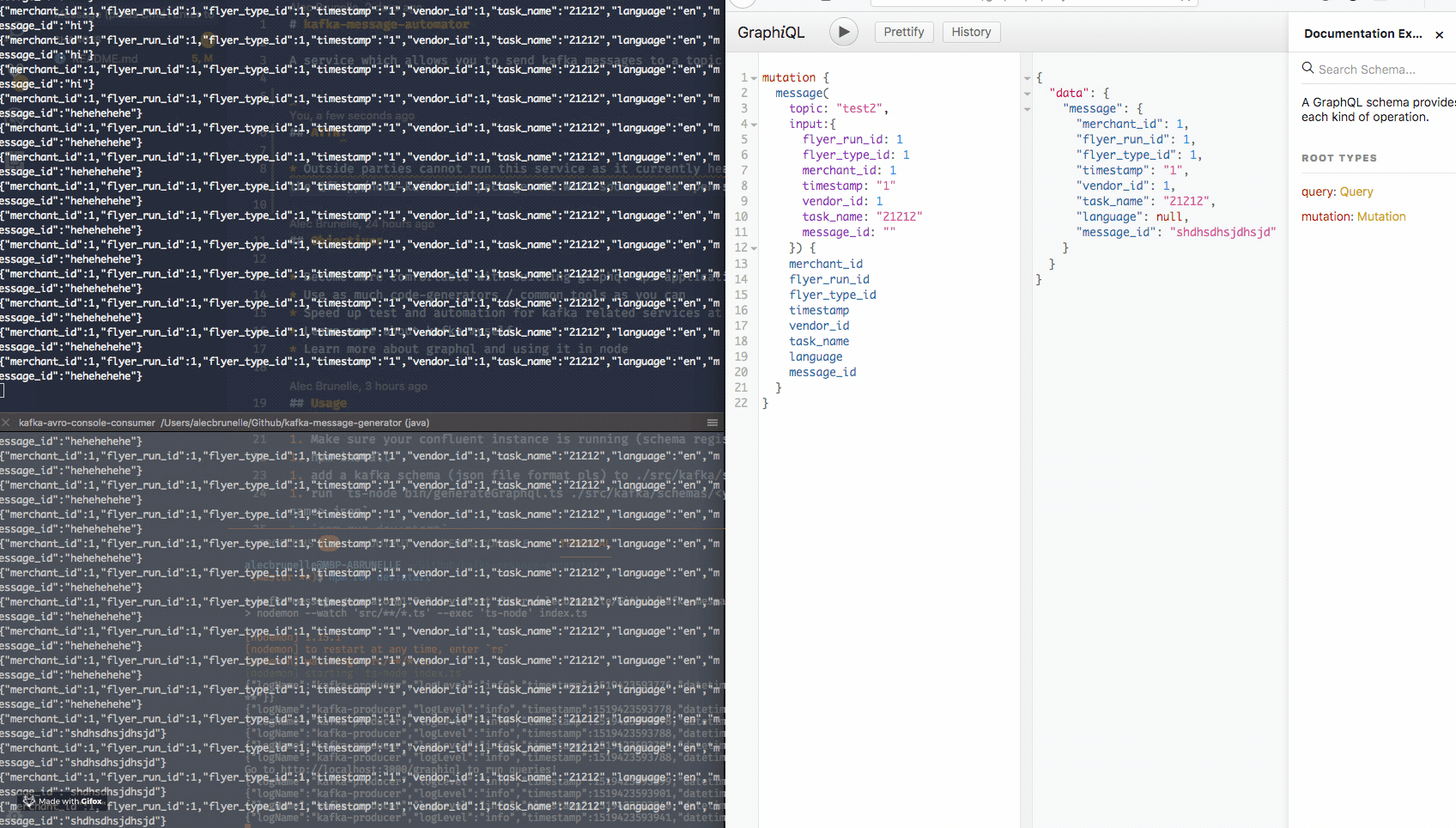 ts-node bin/generateGraphql.ts ./src/kafka/schemas/<your file name>.json - change config/app.json contents to the topic you want to produce to, same name as your schema file