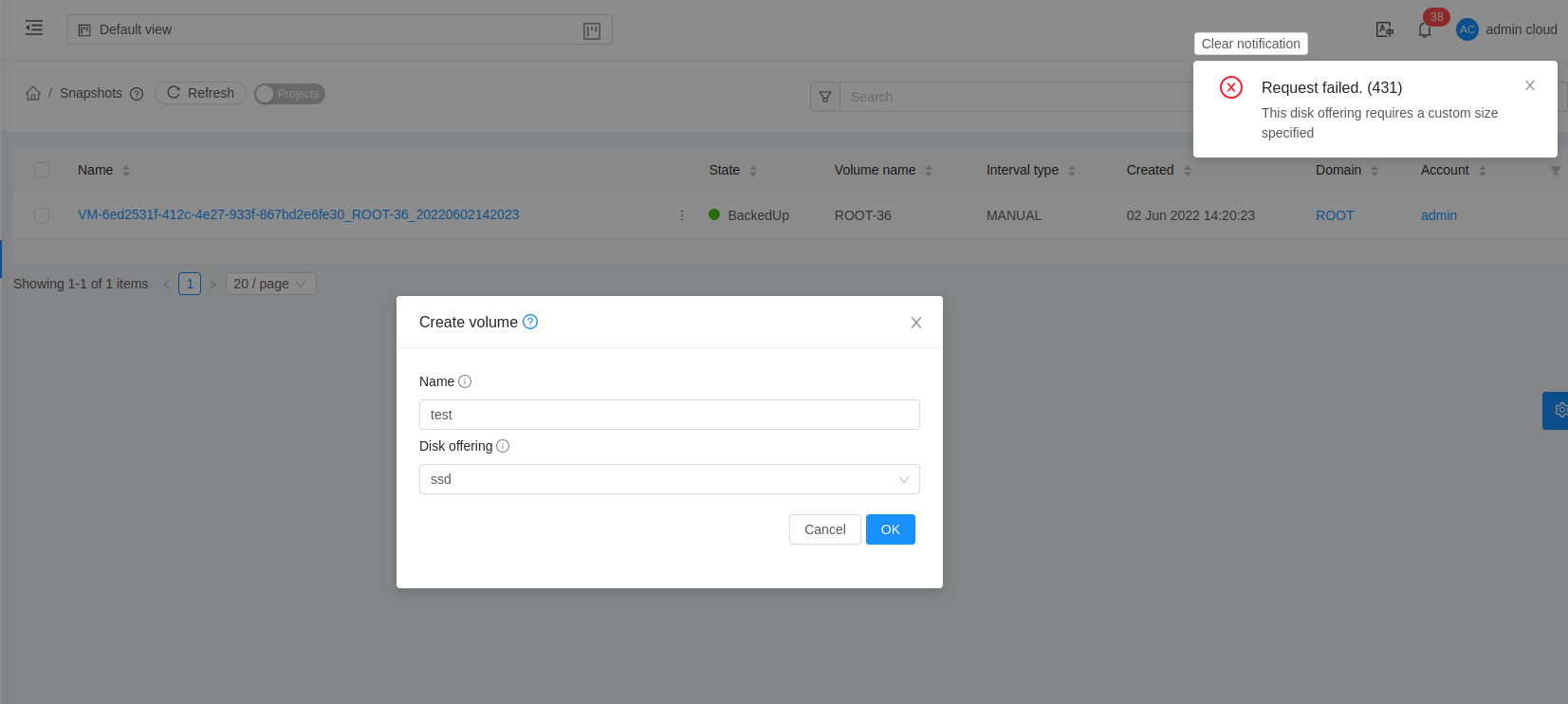 6: Creating volume from a snapshot with a custom disk offering