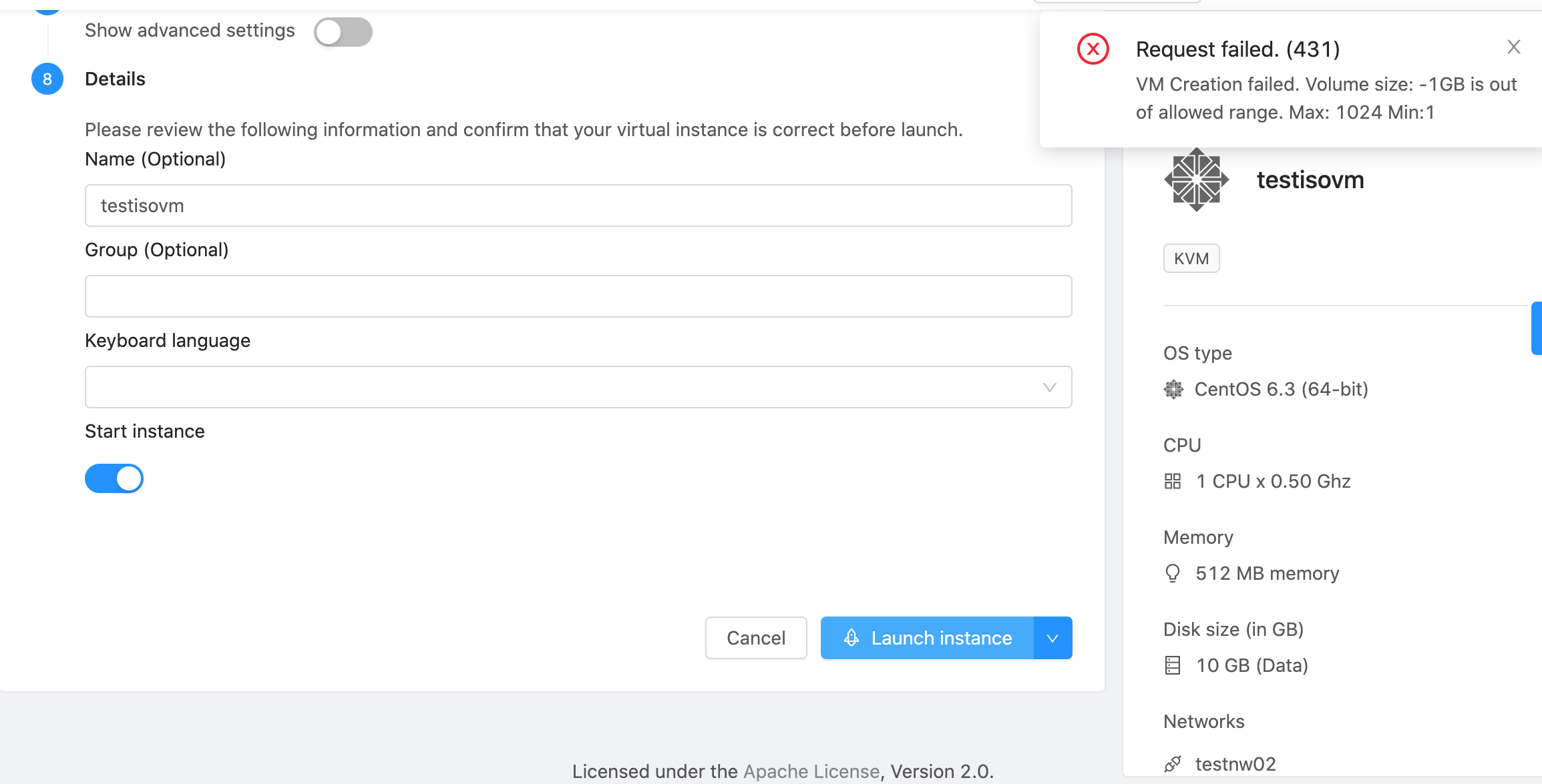 Deploy VM using ISO,and custom disk offering fails with error "VM Creation failed. Volume size: -1GB is out of allowed range. Max: 1024 Min:1".