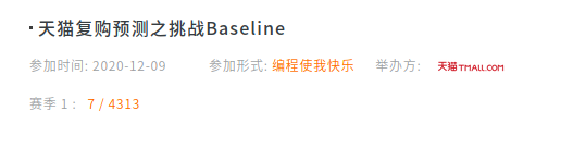 最近尝试了一个数据比赛,截止2021年2月,成绩是 rank 7 / 4313