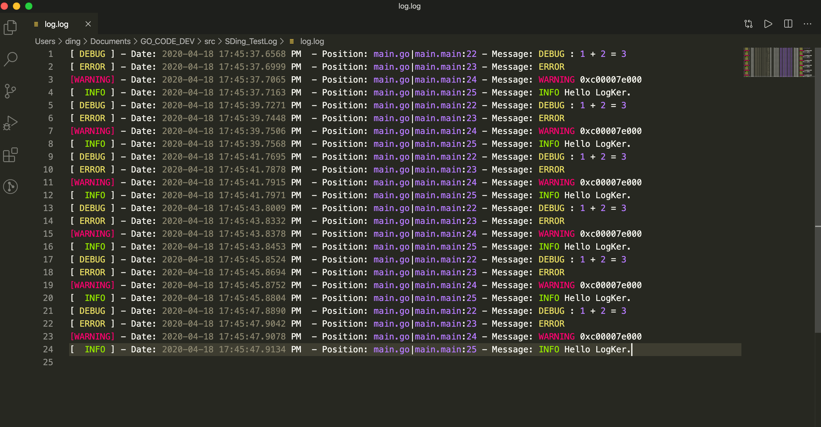 // 1. //format := "{level} - {time} - {position} - {message}"package main