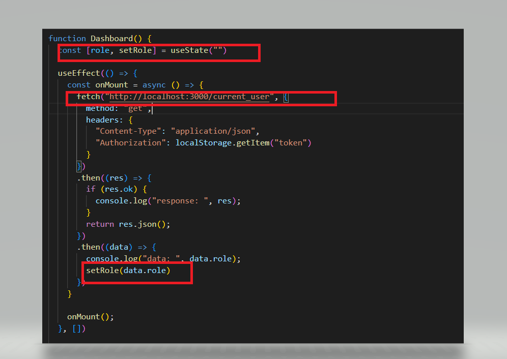 From here you can now make your logical conditions to dynamically display components or info based on the role value assigned into the "role" state.